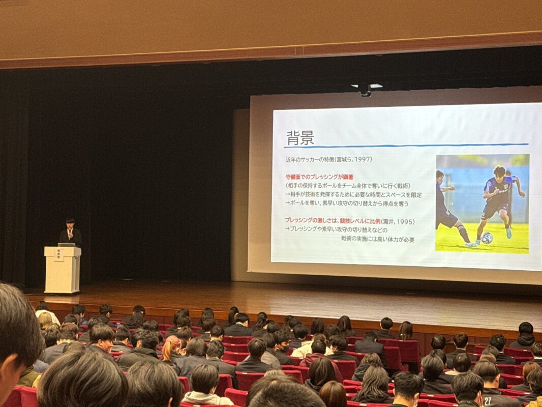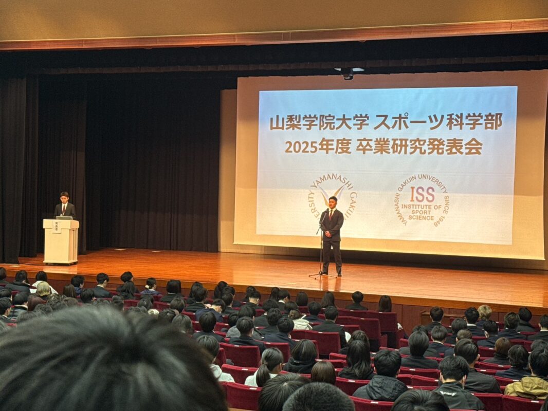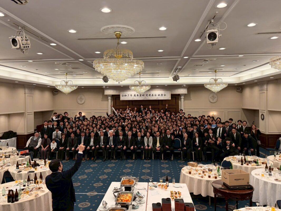 2025年12月16日に「2025年度卒業研究発表会」を開催しました。各ゼミの代表者22名がメモリアルホールにて研究発表をおこないました。 卒業研究発表会終了後は、シャトレーゼホテル談露館にて、「卒業研究発表会祝賀会」を開催しました。 前の記事へ 次の記事へ